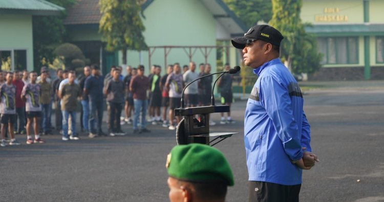 Surabaya, 21 April 2026 – Kegiatan apel pagi Korem 084/Bhaskara Jaya digelar di Lapangan Makorem, Jalan Ahmad Yani No. 1 Surabaya, Selasa (21/4/2026). Apel dipimpin langsung oleh Komandan Korem 084/BJ, Brigjen TNI Kohir, yang memberikan penekanan penting kepada seluruh prajurit dan PNS yang hadir.