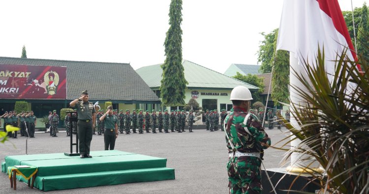 SURABAYA – Korem 084/Bhaskara Jaya menggelar upacara peringatan Hari Sumpah Pemuda ke-97 Tahun 2025 di Lapangan Makorem 084/Bhaskara Jaya, Surabaya, Selasa (28/10/2025). Upacara berlangsung khidmat dengan Kepala Staf Korem (Kasrem) 084/BJ, Kolonel Inf Nico Reza H. Dipura, bertindak sebagai Inspektur Upacara (Irup).